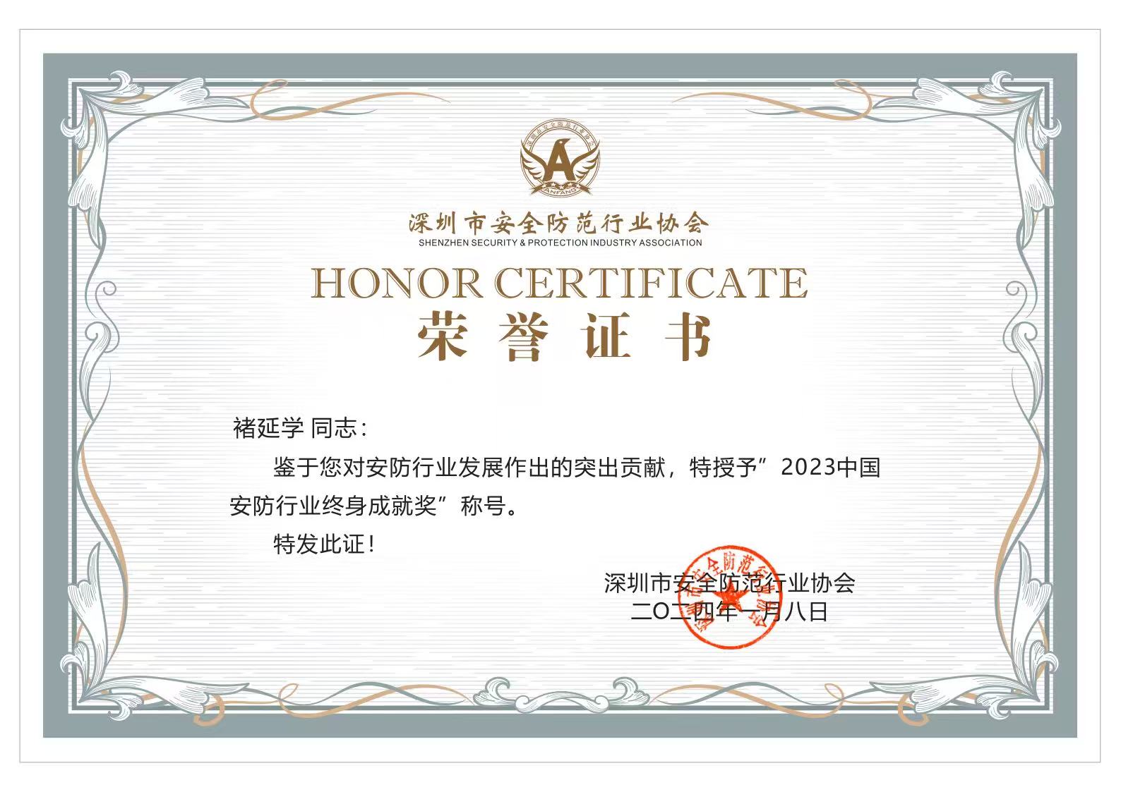 2026年1月7日,由深圳市安全防范行业协会、深圳市智慧城市产业协会、深圳市智能交通行业协会主办,主题为“全域安全·智启未来”的2026全国安防行业交流会暨深圳市安全防范行业协会创立三十周年庆典在深圳世界之窗凯撒宫隆重举办。会上揭晓了“中国数字安防时代风云人物”奖评选结果,锡林浩特市安防中心理事长褚延学获此殊荣。